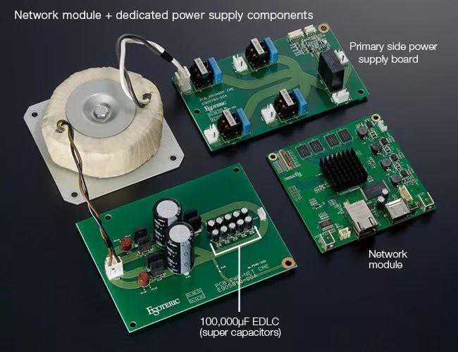 每边声道都有一个独立环形变压器,并各自搭载了8个大型调节电容。左右独立电路板上各用上4个AK4497晶片,2个MOSES03OP放大晶片与16颗EDLC超级滤波电容,让小电流传输的微小音乐动能完整重现。此外,为维持类比输出电路的精确度和大动态频宽,N-01亦引入全新的高电流/高速反应的输出回路Esoteric-HCLD输出缓冲线路,具有出色的速度和准确度,确保高品质声音的输出。