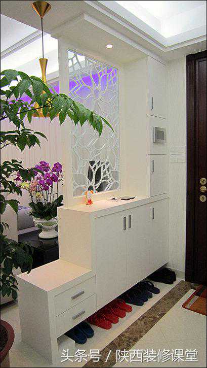 右边的柜子还可以放一些日常用品,可视门铃也直接安装在鞋柜上。