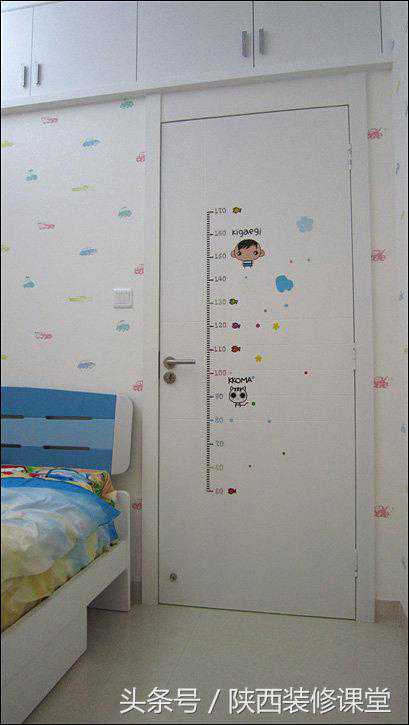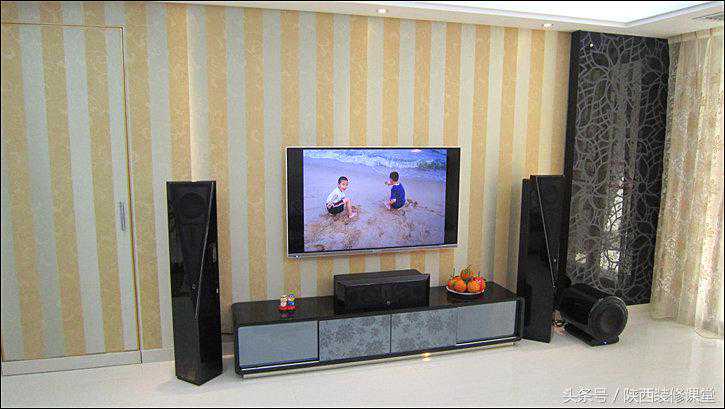 电视背景墙贴的是墙布,要的就是整幅无接缝的效果,当然啦,在隐形门的地方不得不出现了小小的门框和把手,这也是没办法的事。如果没有门框,门使用时间长了门边上的墙布一定会剥落;如果没有把手,手接触到的地方久了一定很脏。鱼与熊掌不可兼得,取个折中吧。