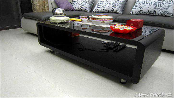 简洁的茶几就是一个框,下面放些个茶叶、遥控器正好,平时清洁也不麻烦。