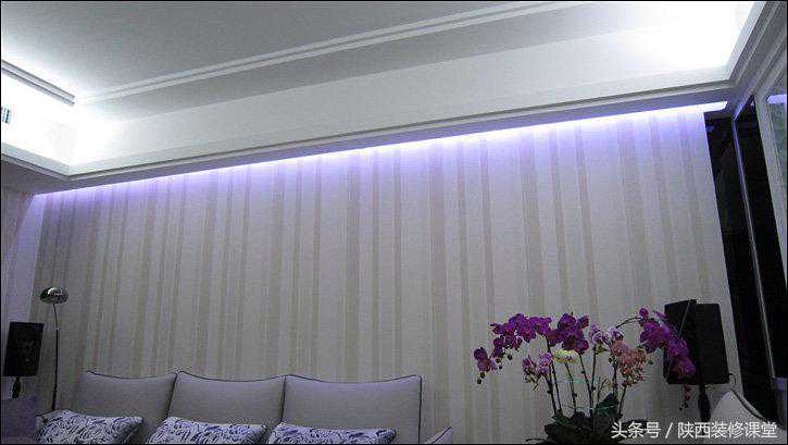 喘口气,呼……到天花下面看看LED灯带在藏光槽中的样子。