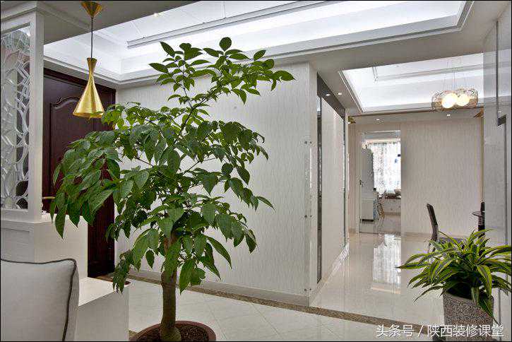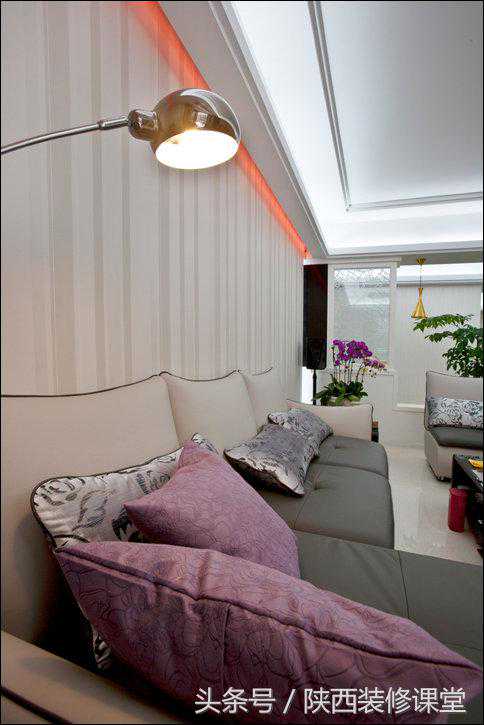 天花板做了一些开槽造型,藏光槽和天花顶分别有两个三公分的小台阶,用设计师的说法是可以起到视觉提升作用。照明用的是网购自【文锦照míng专营店】的某士T5灯管支架,并且用两个暖色LED水晶灯【一灯皇dēng饰旗舰店】点缀。