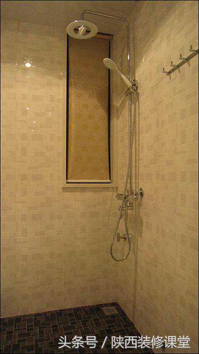 淋浴间内外的地砖虽然是一样的,但做的时候可是先贴轨道石条,再将地砖仔细裁出曲线边缘贴上去,这师傅的手艺还是很好的。