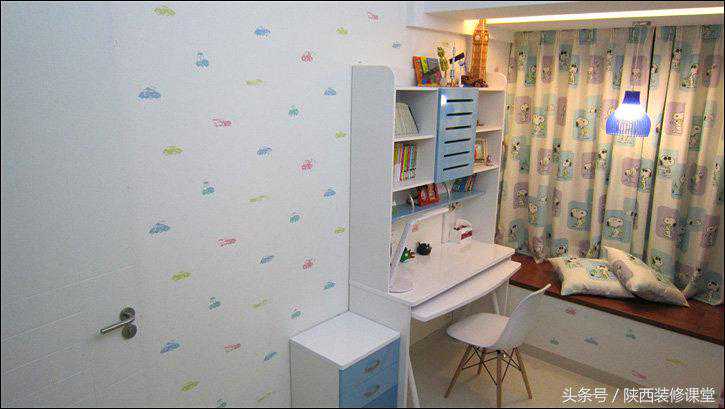 三开门衣柜,从漆面的平整光滑度、配件的做工、使用缓冲铰链这几点就可以看出这套童房家具的质量是可以信得过的。