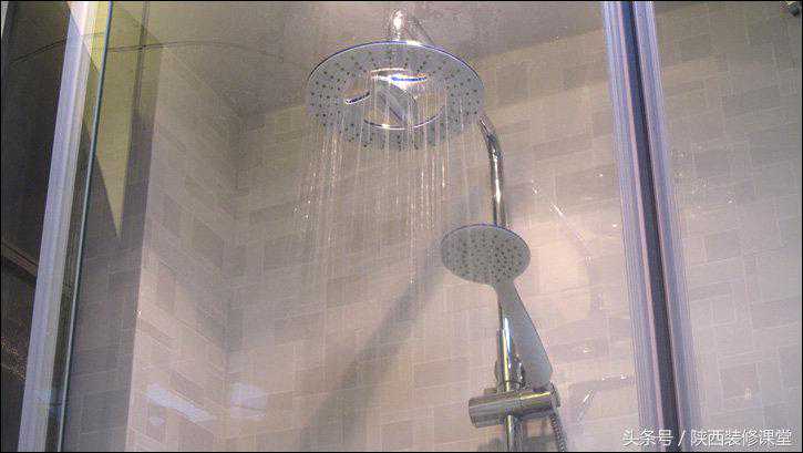 浴霸安装在花洒上方,卫生间的排气也靠它了。左边镜子上反射的是LED平板灯,功率小小,亮度可不小。