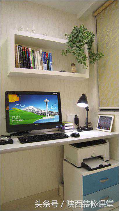 HP的无线打印机放在下面这个小柜子上正好。小柜子看着眼熟吧,是的是的,它本是童房家具套装之一的床头柜,小盆友的房间里面已经放不下,我就不客气地强行征用了,哈哈。