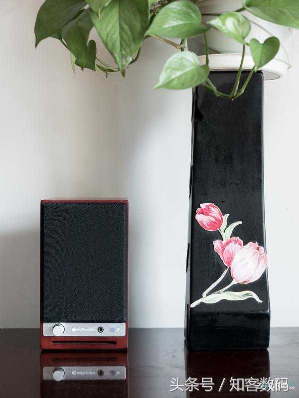 这就是深棕红色淡木纹的魅力,甚至打开包装时声擎HD3上面轻微的木头味道,都让人闻起来觉得甚是舒服。用磁力吸附的音箱防尘网,更是免去了在木质外壳上额外开口的步骤。所以即便不安装上防尘网,声擎HD3倒也显得适得其所,而非在正面四角上各留下些丑陋的窟窿。