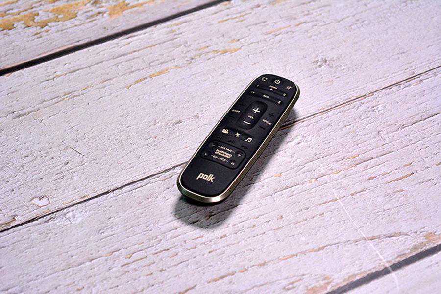 PolkMagnifiMaxSR的遥控器按键配置功能丰富,回音壁上所有的功能都直接在这里遥控器上完成操作。左右平衡等一些机身操作区块没有的功能可以直接在遥控器上操控,十分便捷。