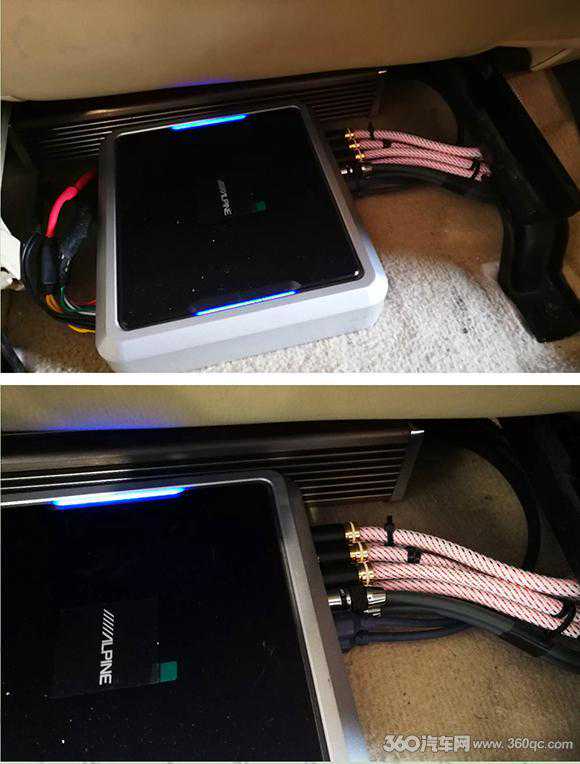 阿尔派0850p处理器以及黄金声学A4功放则隐藏于左边前座椅底下,爱威V5小钢炮则置于右边座位底下