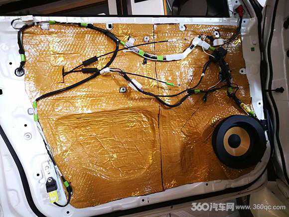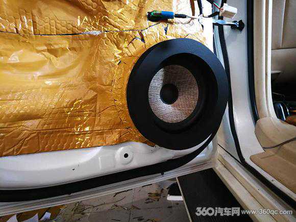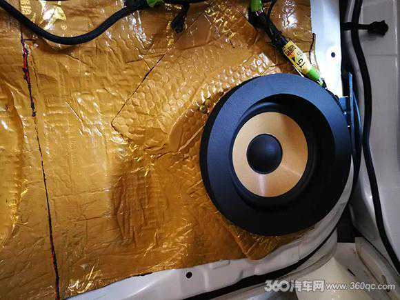 前声场法国劲浪KRX3黄盆系列6.5寸中低音与原车喇叭无损换装。而后声场劲浪ps165F这套的高音喇叭则安装于门板上,高档,简洁。