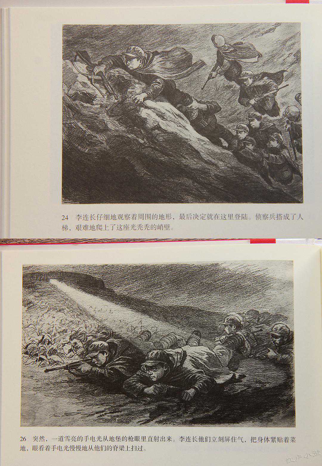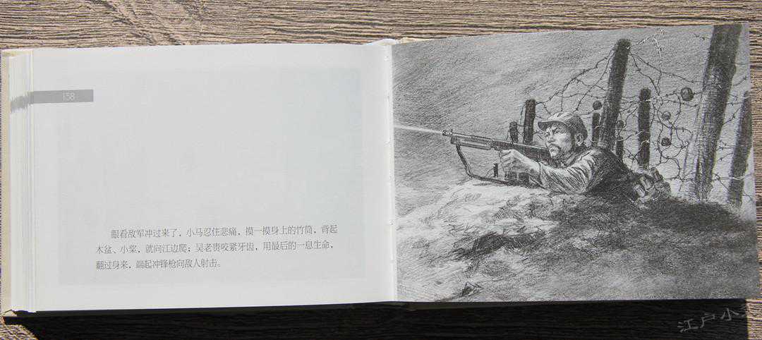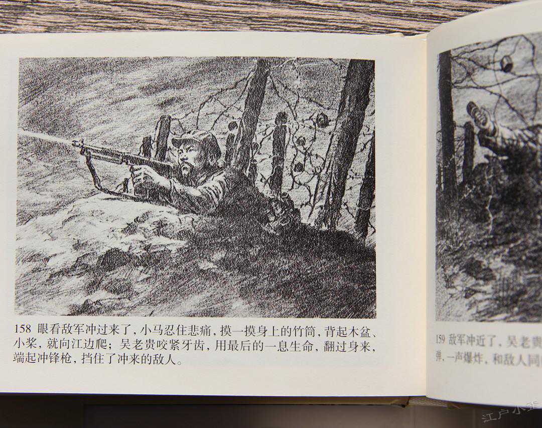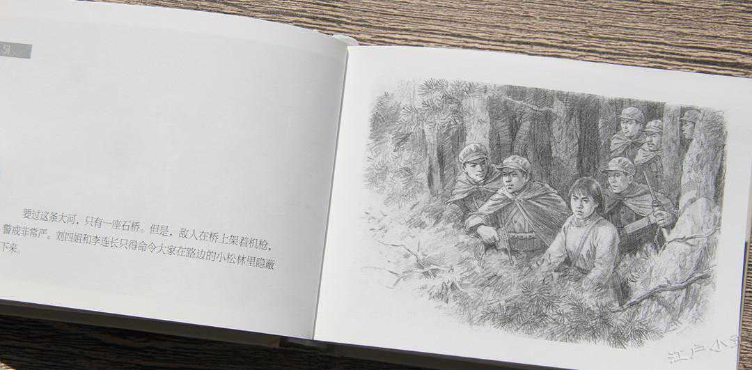 2012年上美推出《渡江》小精,这本可不得了,一图一文,所以他的画面特别大,甚至有的画面尺寸超过了大精!圆脊设计又很方便翻阅展平。