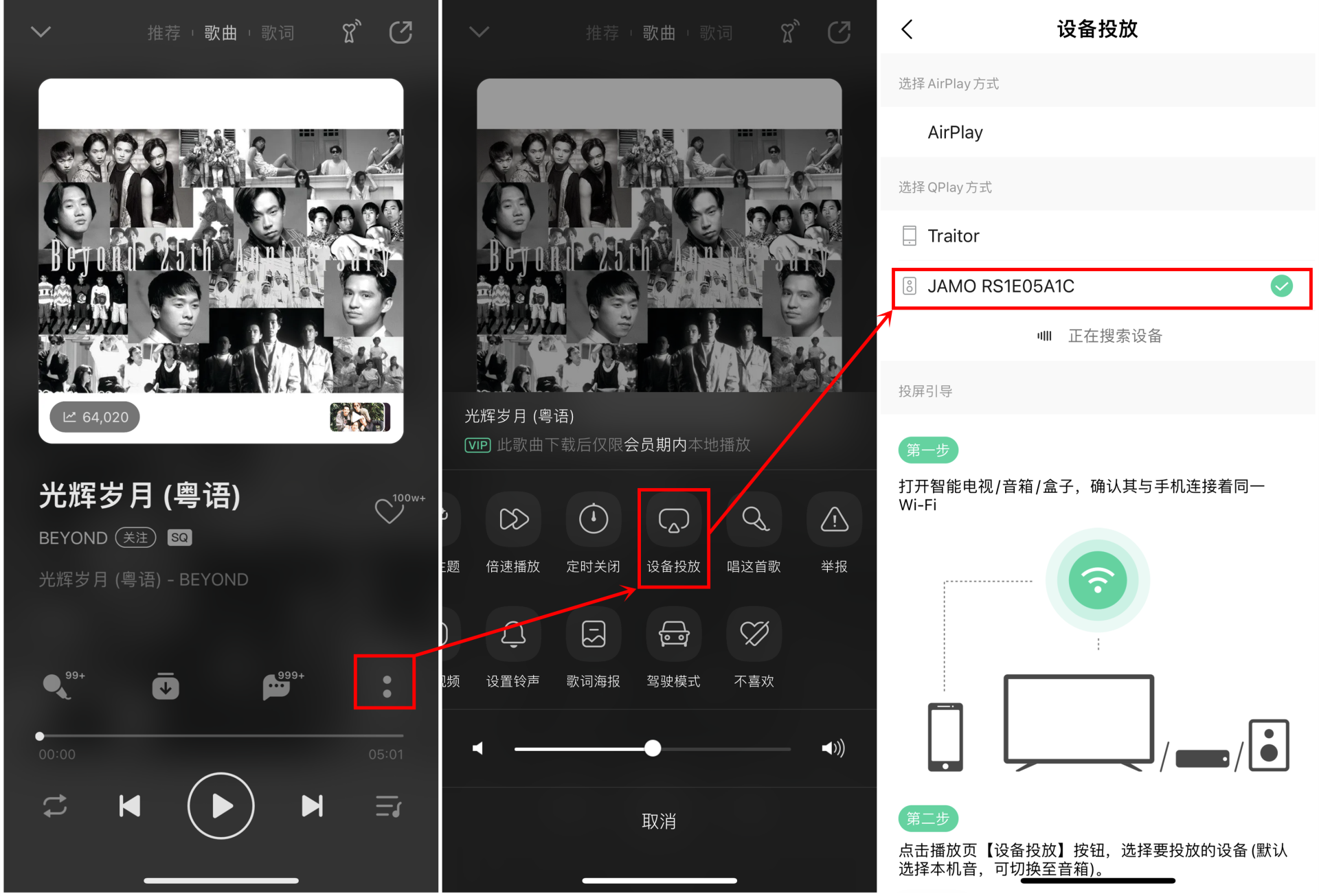 如果你用的不是苹果的设备也没关系,通过QQ音乐中的QPlay功能同样可以实现一样的投流效果。
