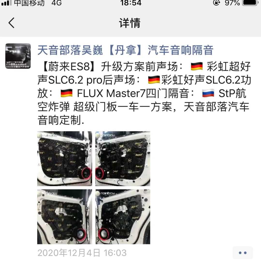新能源车持续火爆,改音响的需求也随之增多,在百度和朋友圈搜索下,基本上市面上销售的新能源车都已经有丰富的改装案例,这说明不管什么品牌、什么档次的车辆,车主都有听音乐、听好音响的潜在需求。