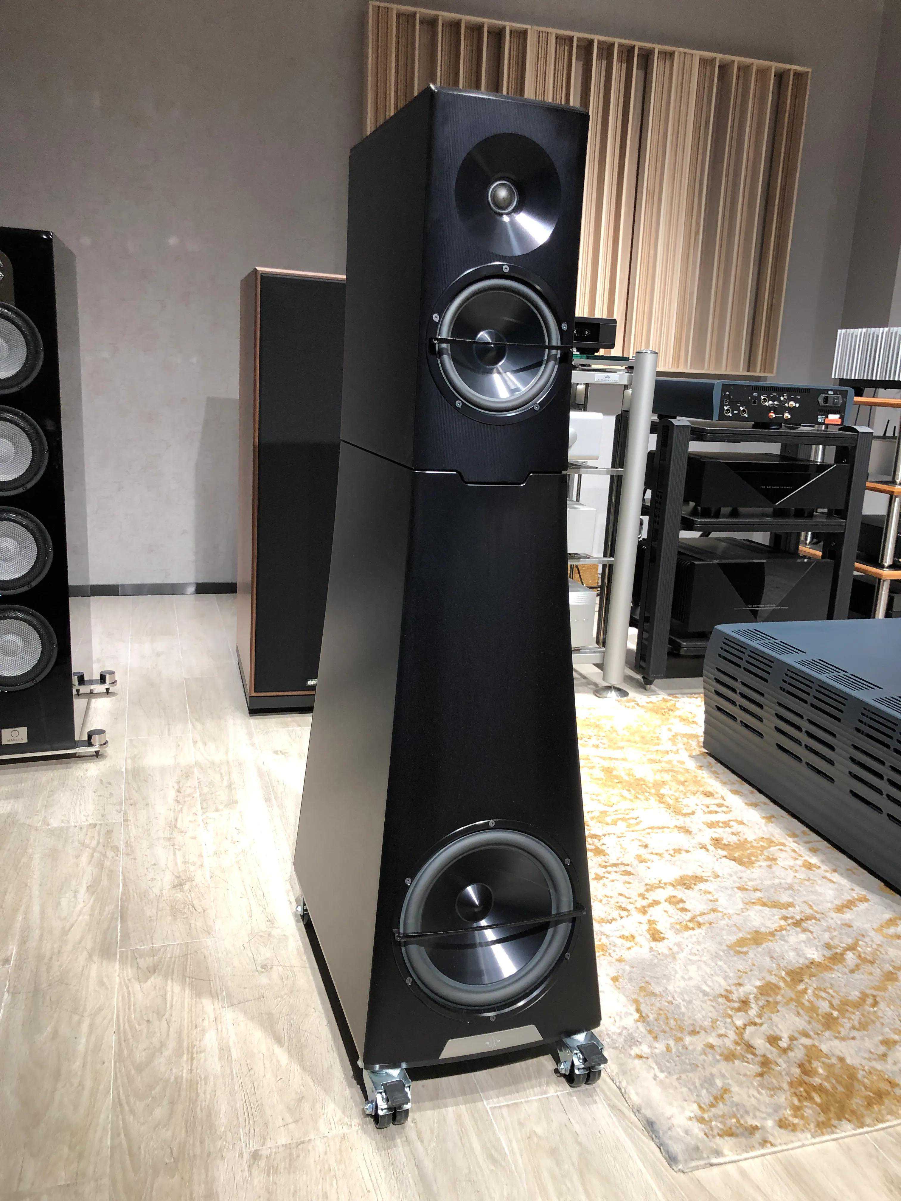 喜欢用家人命名产品美国YGAcoustics,上图这对以设计者女儿命名Heiley黑利2代音箱,3路3单元密闭式设计,宽:330深:540高:1220mm体积,箱体选用6061航天铝材用CNC数控车床加工而成,里面打上强化龙骨架,强化箱体刚性,减少中低音单元工作时产生震动对箱体影响,减少箱声产生,让声音发出来更清晰透明,如何用料,单只箱子重量达到76公斤。