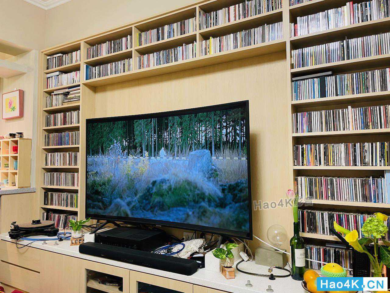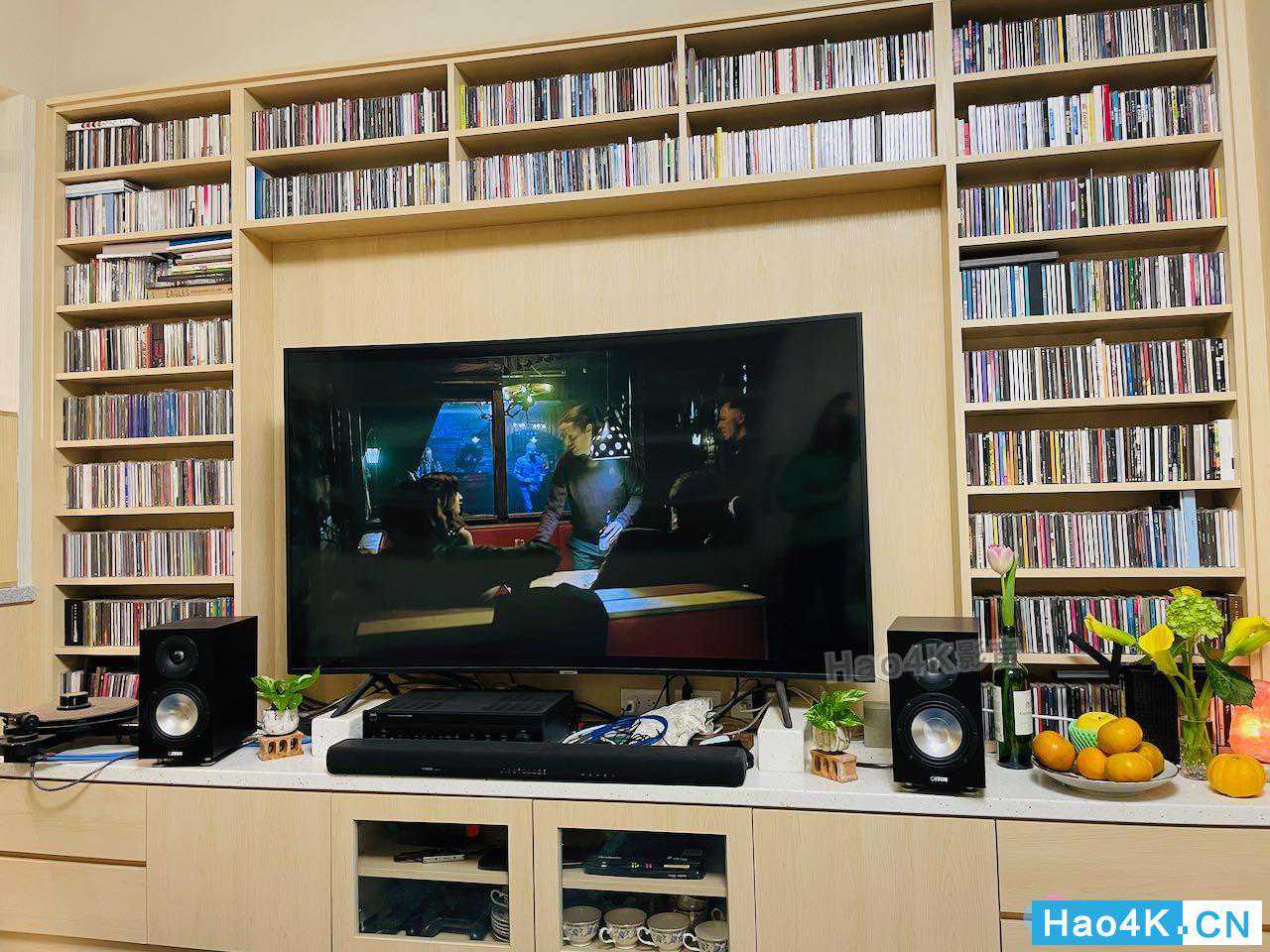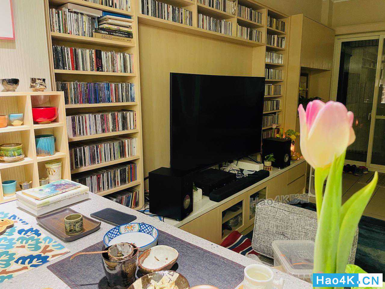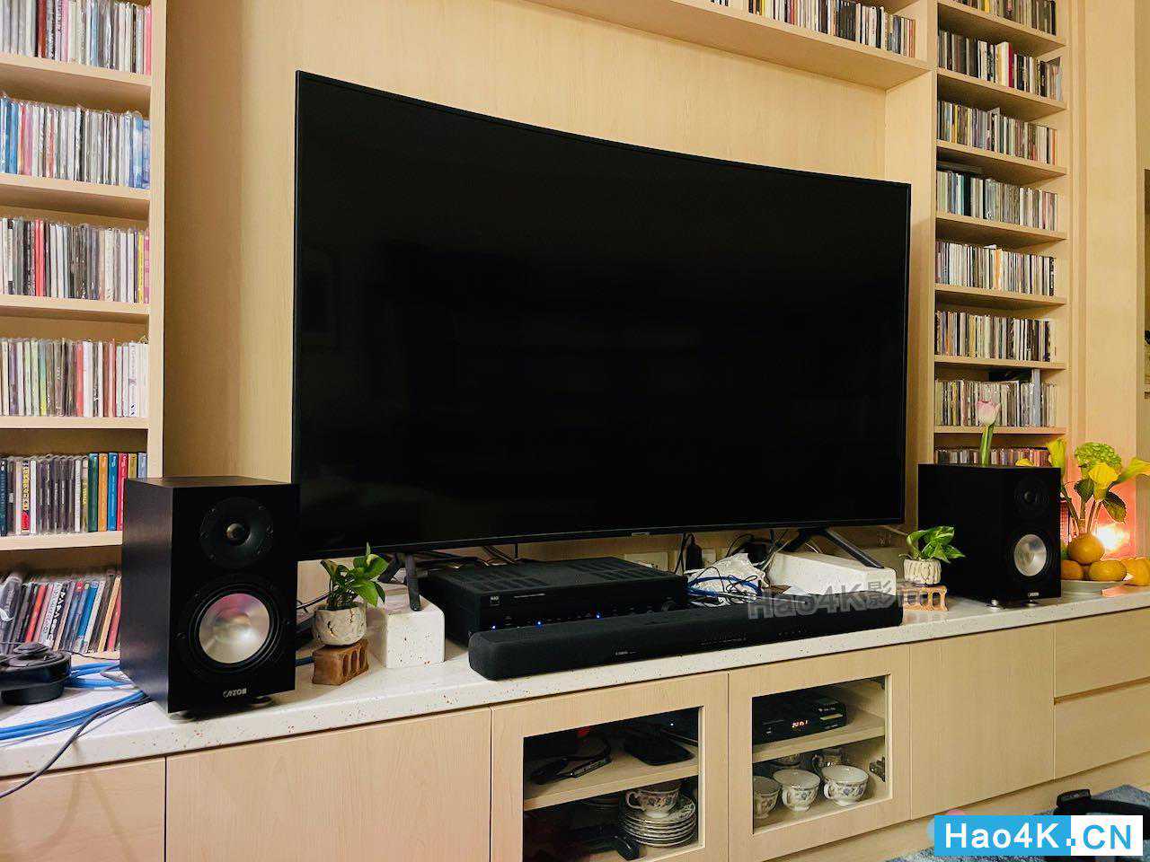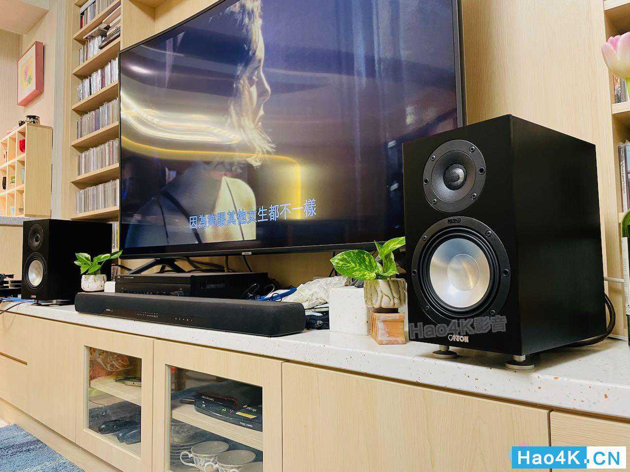▲音箱拆箱完毕,看到这里,是要来让进驻的空间,基本上就是电视柜,位于客厅正前方,前面有说,由于安装电视的时候,不得已只能将电视立于桌面,因为没有壁挂,所以牺牲了一些桌面空间,然后电视本身有在搭配一款雅马哈的SoundBar。而本身由于有收藏一些黑胶、以及有一定数量的CD,所以我还是倾向把两声道系统独立出来,但是又与电视系统摆放在同一位置的使用方式。