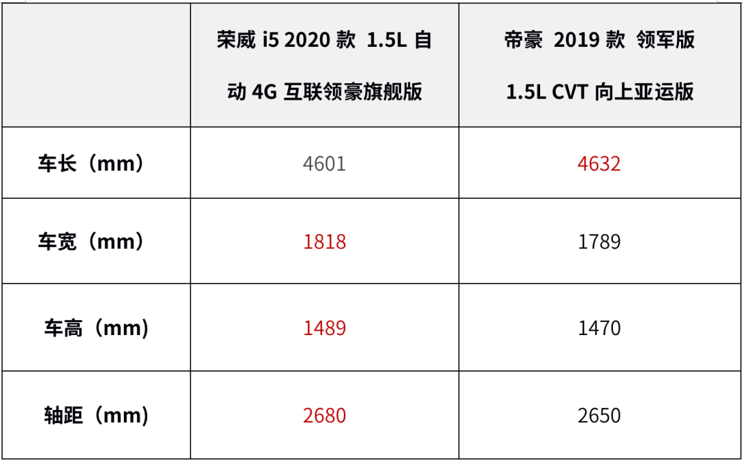 用车除了坐得安全还要坐得舒服,在车身尺寸方面,荣威i5长宽高分别为4601×1818×1489mm,轴距为2680mm,宽度、高度和轴距稍稍领先于帝豪。