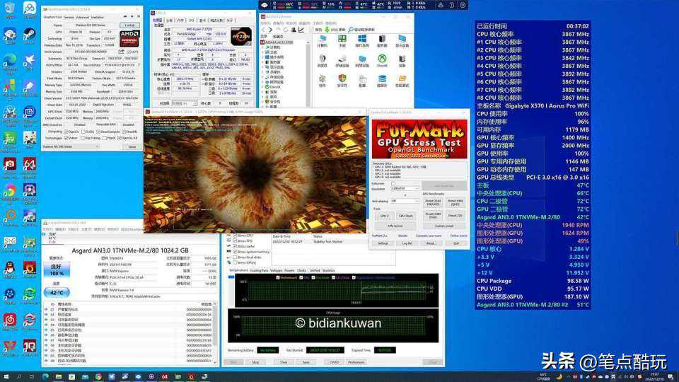 AIDA64稳定性+甜甜圈双烤稳定运行半小时,温度CPU不高于66℃,发热量挺大的RX590显卡不高于72℃,都在理想范围之内。