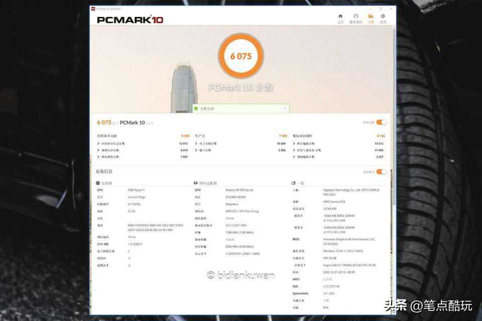 PCMark10测试6075分,日常办公学习娱乐基本无压力。