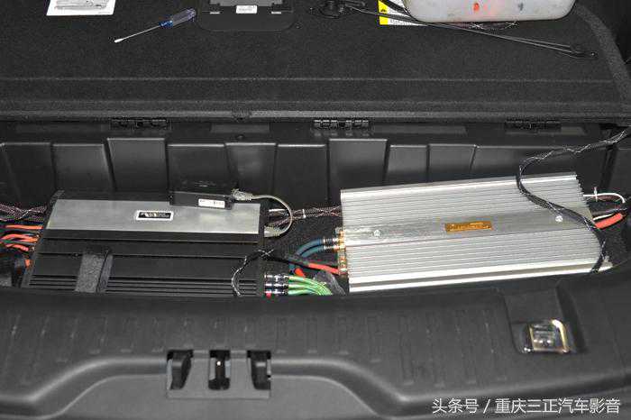 两台功放隐藏安装在尾箱。
