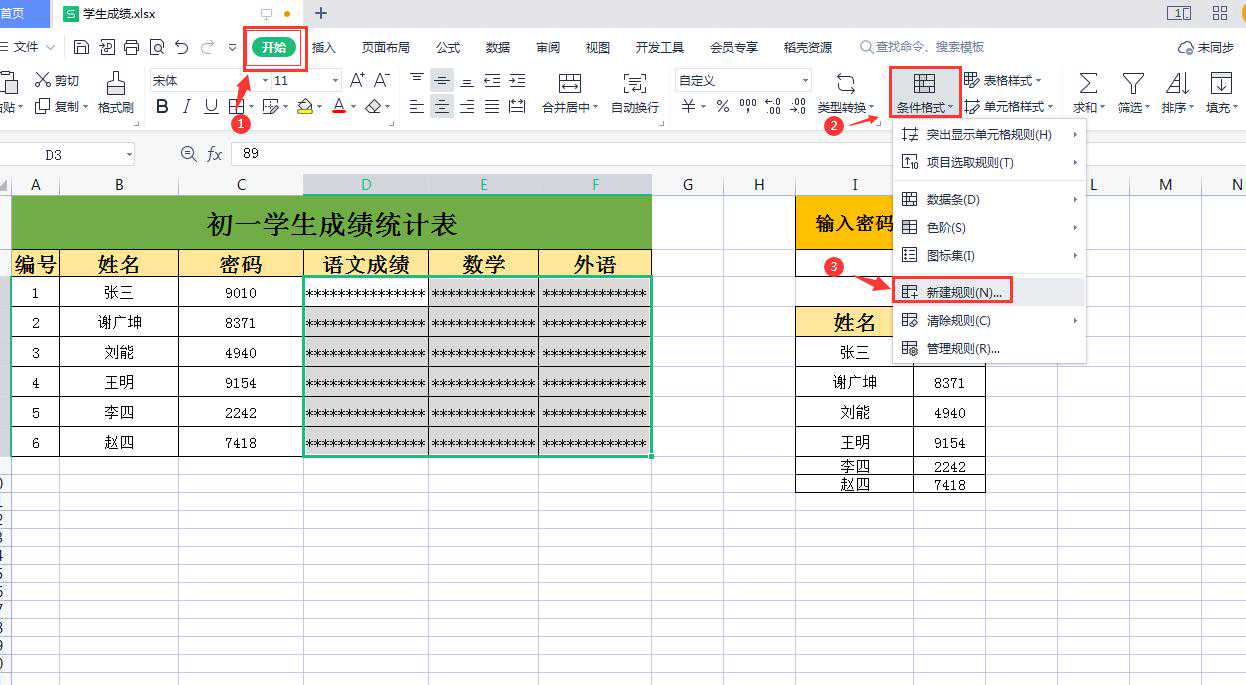 我们在使用Excel表格制作时,有时为了安全和保护隐私需要为每个人设置一个密码,并且对所有数据进行加密,只有输入正确的密码才能看到自己的信息。那么,如何实现Excel表格数据加密一人一个密码,互不干扰呢?今天就以下面的“初一学生成绩统计表”为例跟大家分享一下具体方法。