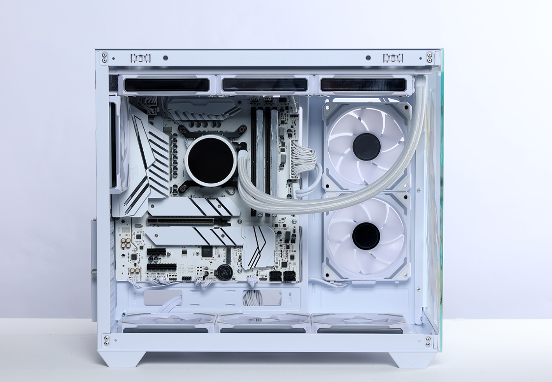 影响整机颜值最关键的配件,就是机箱。定好要求之后,咱选择的是这款白色沐光Plus机箱,中塔规格,270°全视角无立柱海景房,而且各面板还支持个性DIY涂装,如果不想额外花钱,那直接幻月姬定制版,推荐给你。