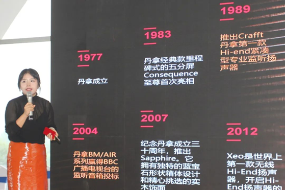 演出过后,来自安恒利(国际)有限公司的杨睿女士为在场的观众重点介绍了上午雪枫老师演示所用的丹麦原产、纯手工打造的丹拿Core系列专业监听扬声器中的顶配——Core59。并向现场观众赠送了从北京带来的充电宝、随身音箱、以及桌面蓝牙音箱等小礼品。