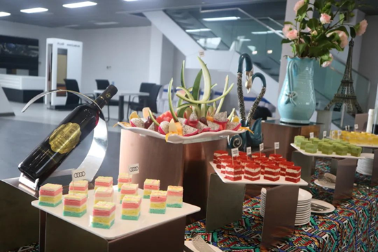 累了饿了,百人份的茶歇早已预备好。听着美妙的音乐,几块蛋糕、水果下肚,是幸福的味道没错了!