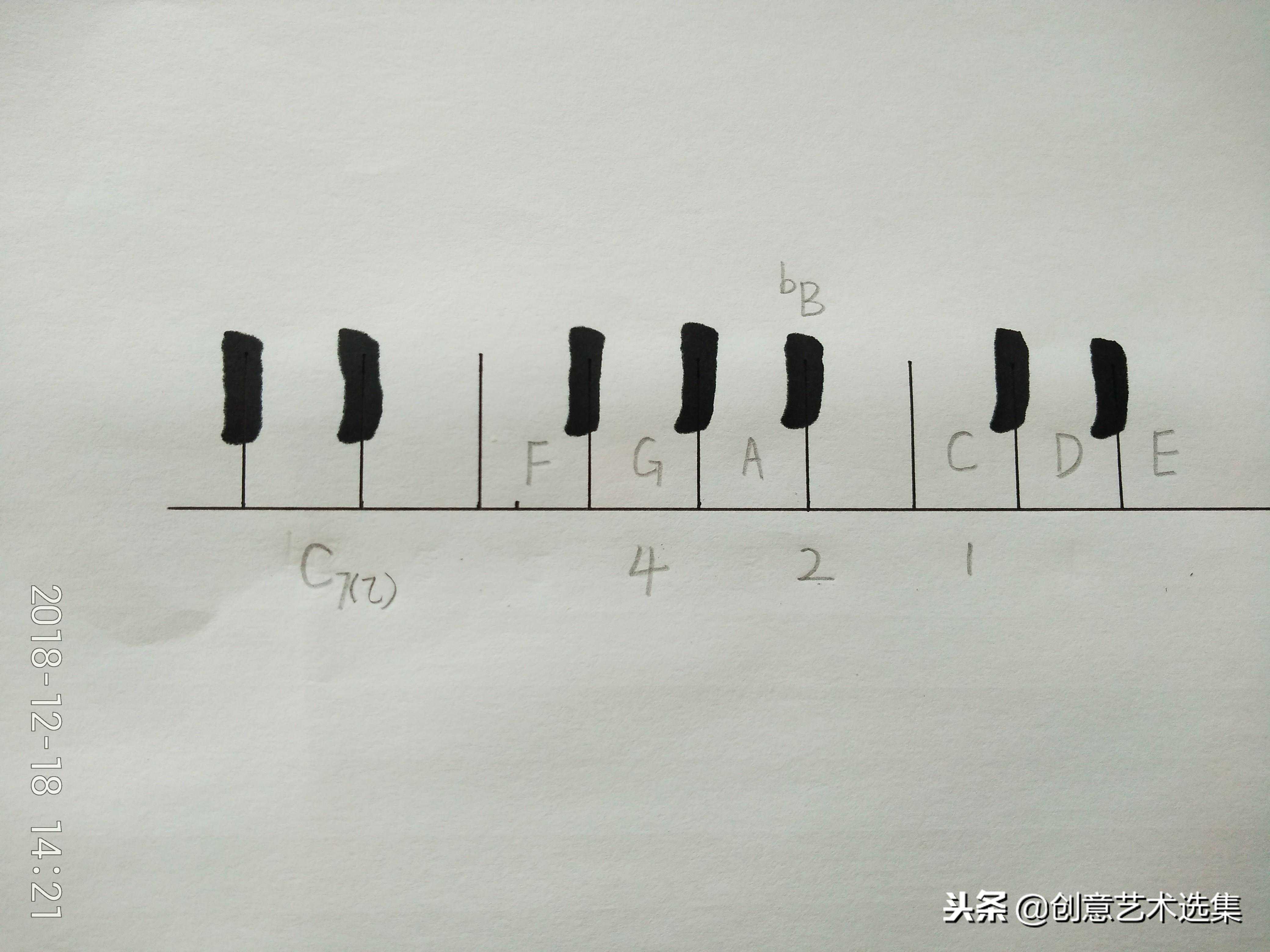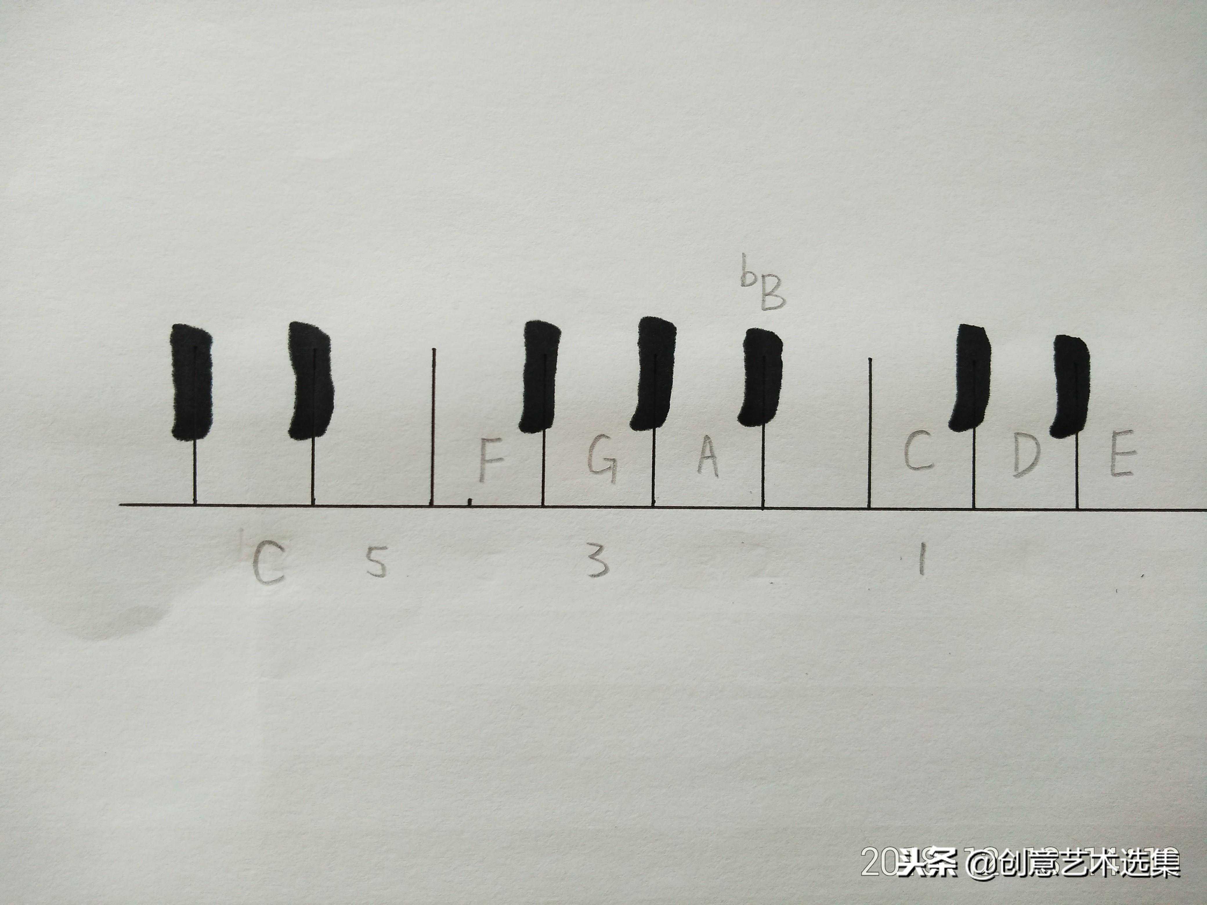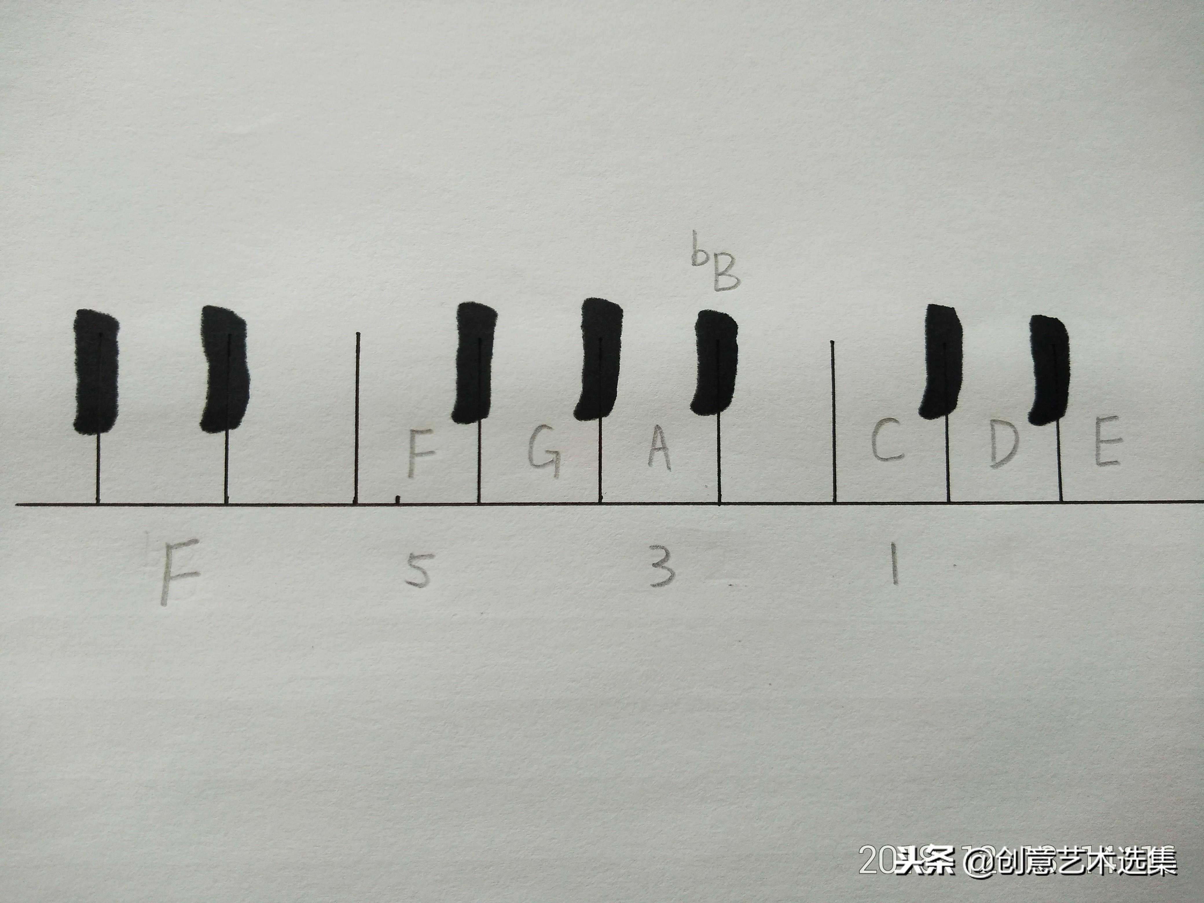 如图所示,F大调的音阶是:F、G、A、bB、C、D、E