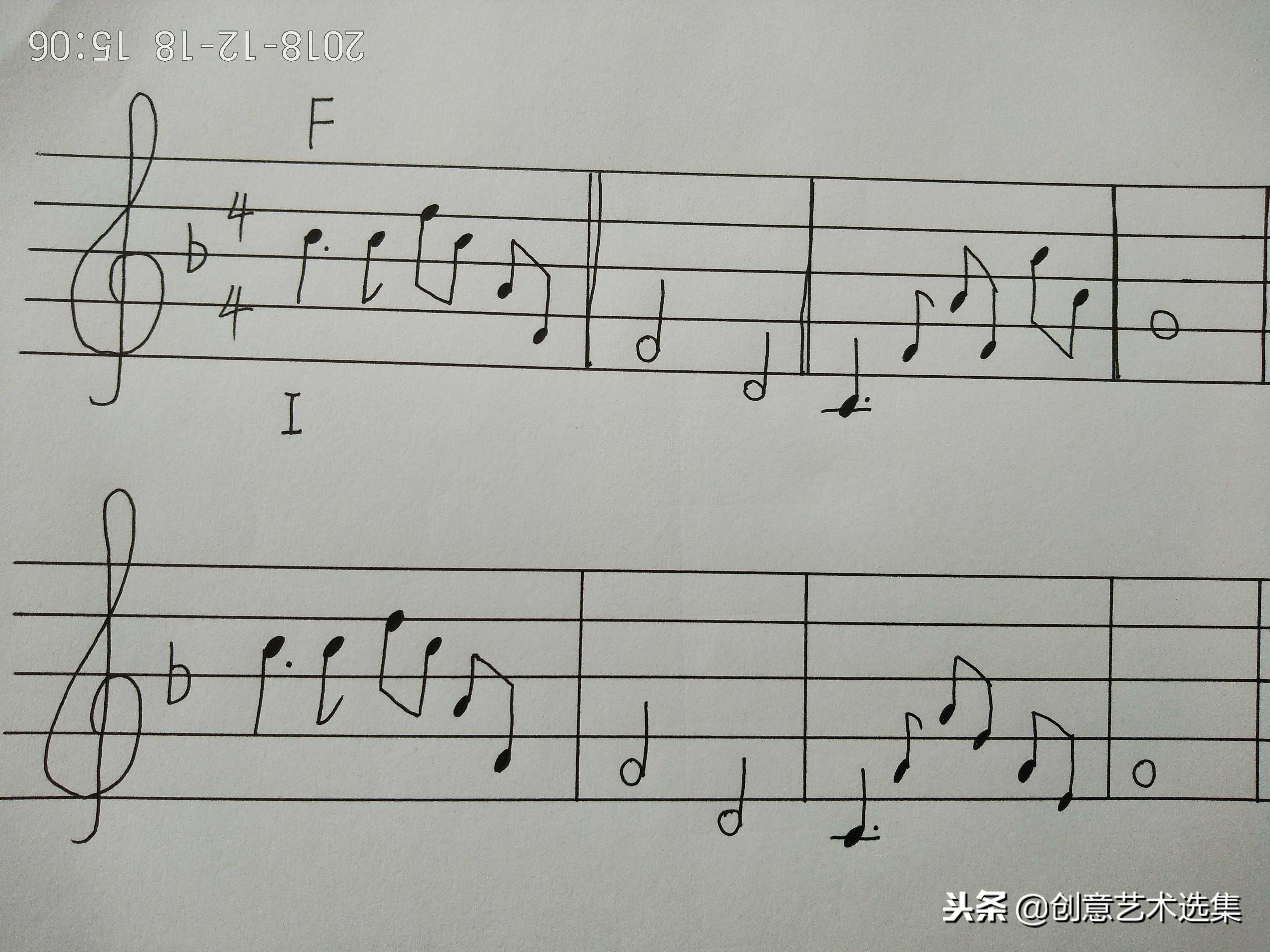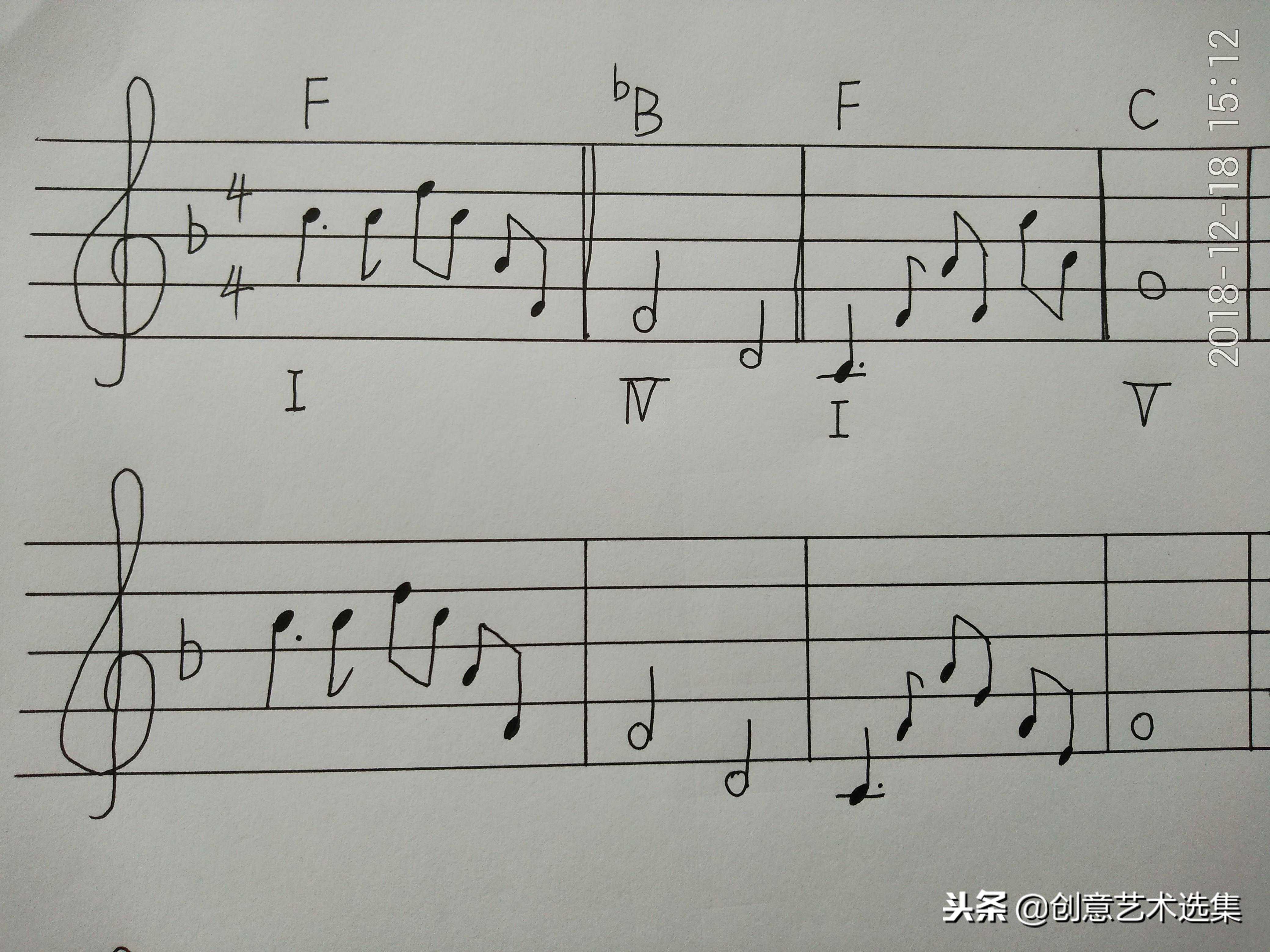 F大调配和弦这是一首F大调的歌,44拍。而且这是二段式的歌:aa’ba’,意思是第一行与第二行基本一样,第二行与第四行一模一样,第三行是别的旋律。