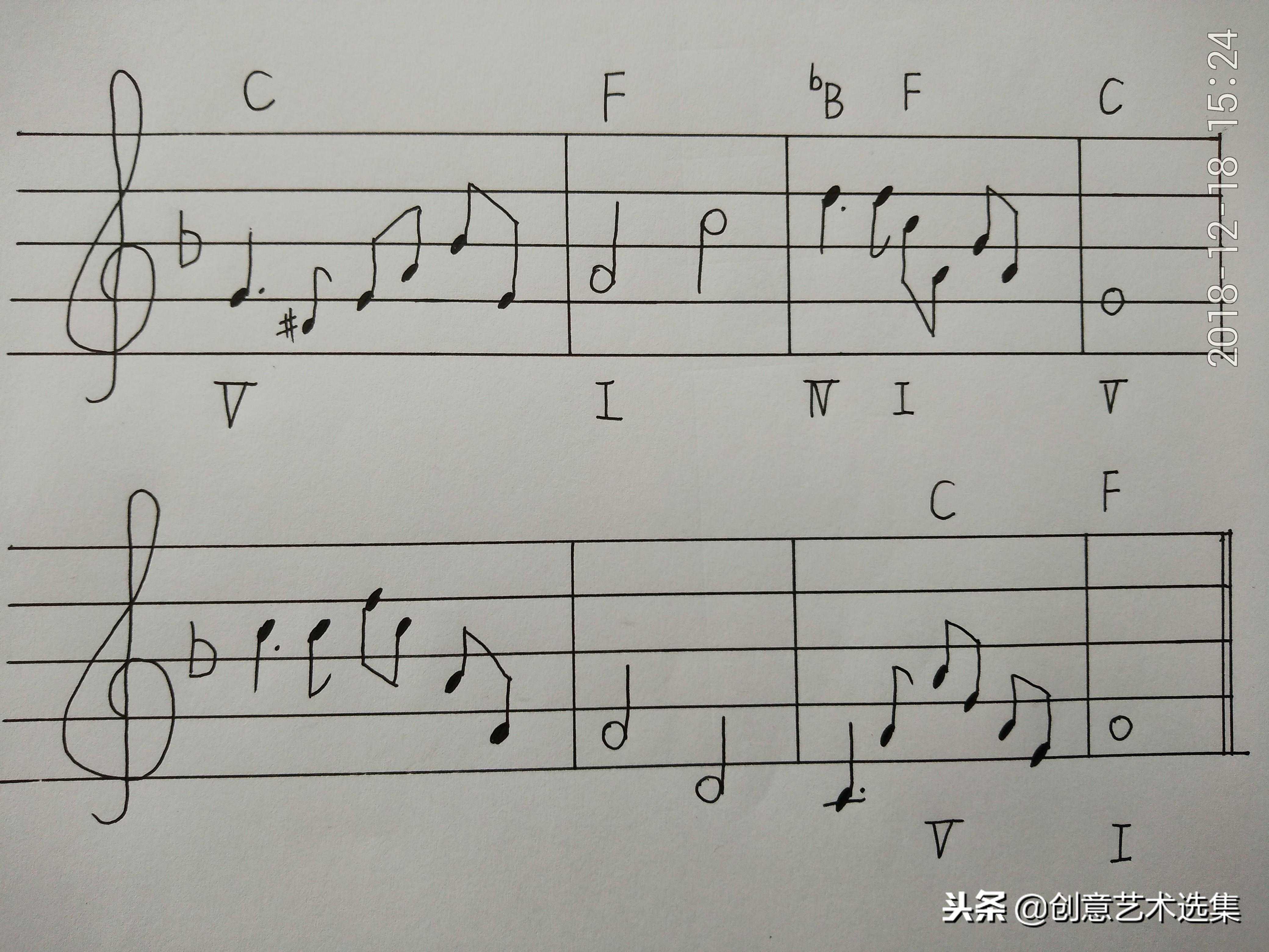 第三小节的旋律是|5.13153|,根据135判断是I,F和弦