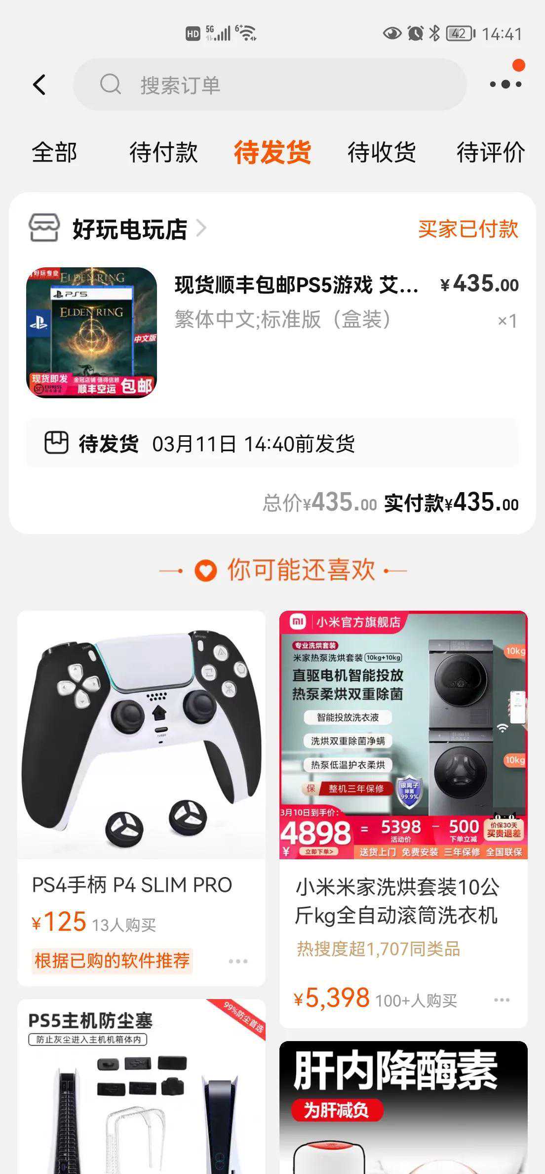 淘宝了张老头环435,明天到。