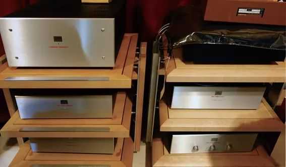 高董这里放弃了原厂内建的D类功放,改用瑞士CHPrecision的M1单声道后级以桥接方式来推低音柱,为了缩短距离功放就在在低音柱后面。我们看到Statement的主音箱与低音柱背面各有相对应的2只与3只低音单元,目的是与前障板的低音互相抵销掉谐震。