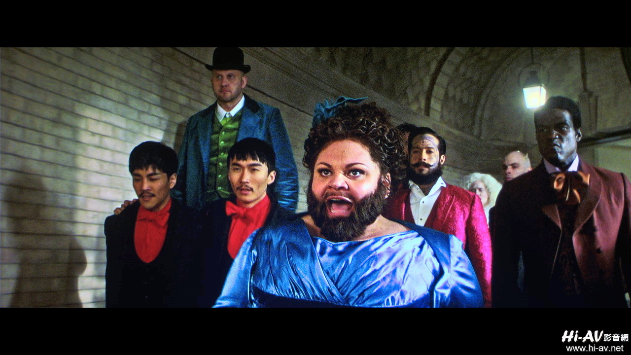 巴纳姆在酒吧邀约卡莱尔入股的片段也很精彩,一开始酒吧内其他客人离开后,整场戏就只有他们两人与酒保的互动,不但有对话还有动静有致的歌舞演出,除了跳上跳下的音效高低位置差异,甚至酒保在台面上推动酒杯或拿起扫把快速刷地的音效都历历在目——过人的声场背景透明度与声音细节刻画、动态起伏描绘,确实是DenonAVR-X8500H非常强悍之处。