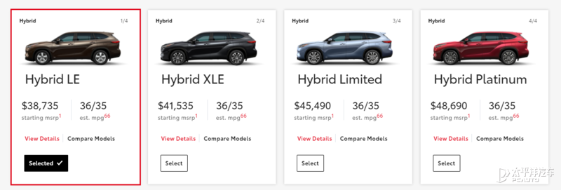 而作为丰田中美定价的差异标准,我们以新一代丰田汉兰达为例,目前新一代汉兰达混动在美售价区间为38735-48690美元(折合人民币25.09-31.54万元),而国内刚刚上市的广汽丰田汉兰达售价为26.88-34.88万元。因此我们可以大概估算丰田的中美定价上,中规国产车型普遍较美版车型贵上2-3万元。