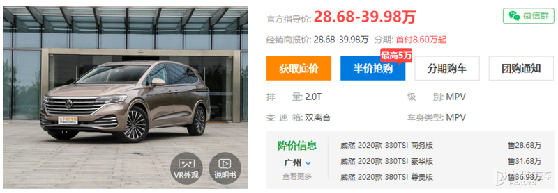 所以我们再参考一下潜在对手们的定价,其中更小号的广汽本田奥德赛售价为22.98-37.68万;而同级别的别克GL8售价23.29-52.99万元(ES版31.39-41.39万元)、大众威然售价28.68-39.98万。