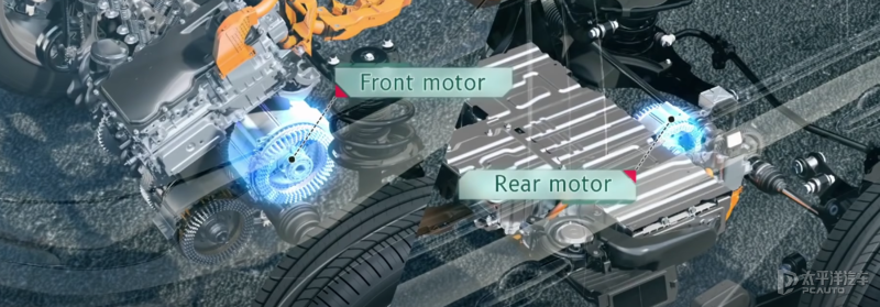 同时新一代赛那还提供两驱版和四驱版可选,其中四驱版会在后桥上新增一个电机用以驱动后轮,实现E-Four电控四驱;官方表示:这套四驱系统可实现100:0至20:80的前后扭矩分配,同时这套四驱的变速箱和后轮不再像传统四驱使用刚性传动轴连接,而是通过独立工作的后桥电机来适时参与驱动,从而减少转向不足和应付极端路况。