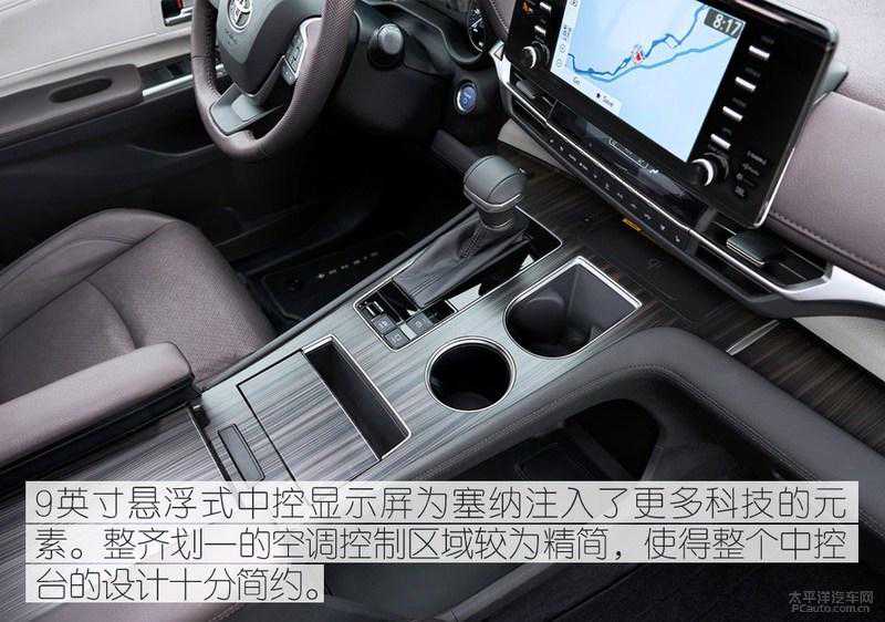 进入车内,内饰可谓有了翻天覆地的改变,较上一代车型有了质的变化,通过利用双色材质进行拼接,营造出十足的豪华感;而9英寸悬浮式中控显示屏+7英寸的液晶仪表的组合,又给新一代赛那注入了更多的科技感。