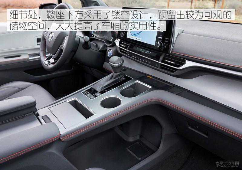 此外,新一代赛那的电池组体积也安装在后排座椅下方,做到了不额外占用乘客空间。更值得一提的是,新一代赛那的全车的USB口为7个,儿童座椅卡扣4个,杯架更是达到了18个。