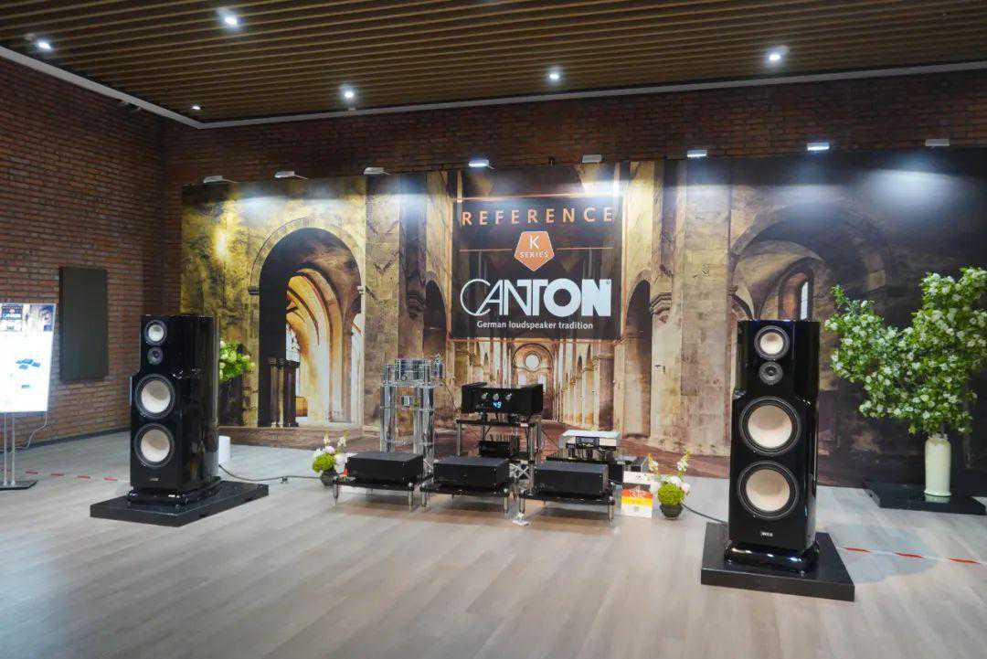 音联邦以德国CANTON、美国SVS、美国亚特兰大、美国OSDAUDIO四大品牌展区展示了不同品类的影音产品。德国CANTON的顶级参考1K在现场开声示范,以德国ASR的功放搭配开声。