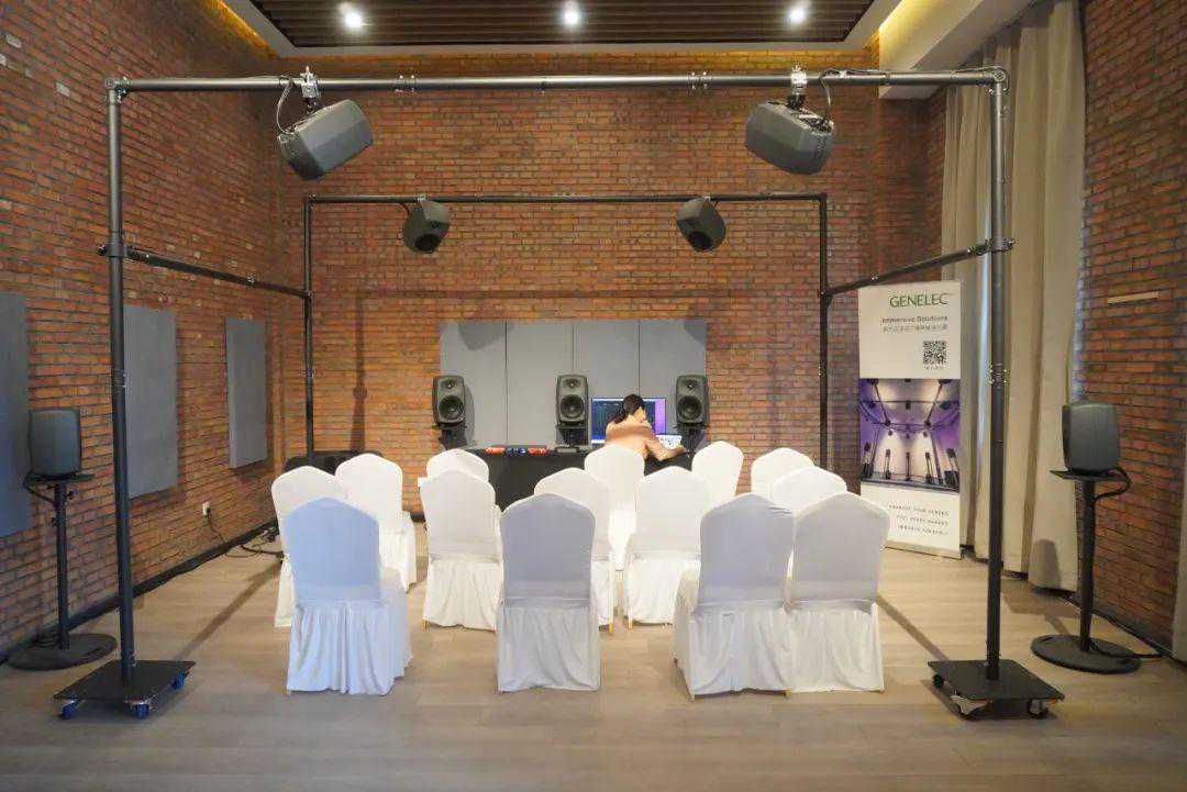 传新科技展出了以Genelec真力的监听音箱搭建的7.1.4全景声影音系统,此外还有SSL调音台、Focusrite的音频接口、Warmaudio的话放、KRK的音箱等音乐制作相关的产品。
