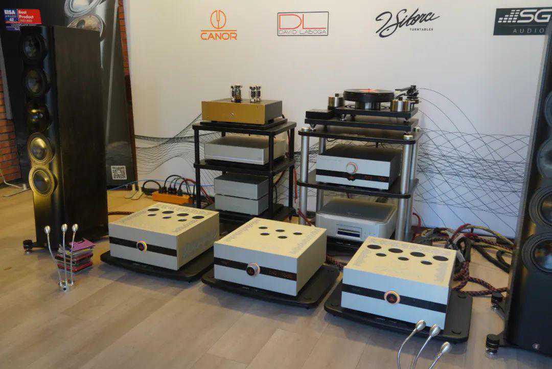 艾音仕展出了hornsUniversumMK4号角喇叭、CanorAudioHyperion亥伯龙P1旗舰前级、CanorAudioVirtus威图斯M1旗舰单声道后级、波兰Lampizator解码器Horizon地平线旗舰解码器、黑胶唱机等器材。