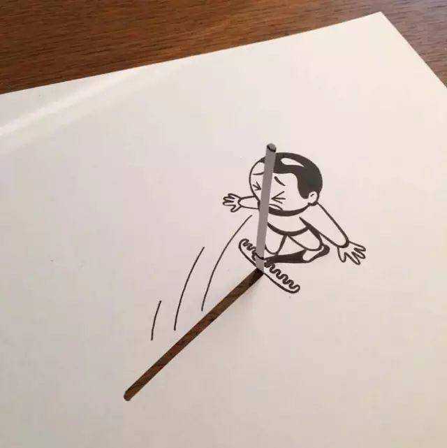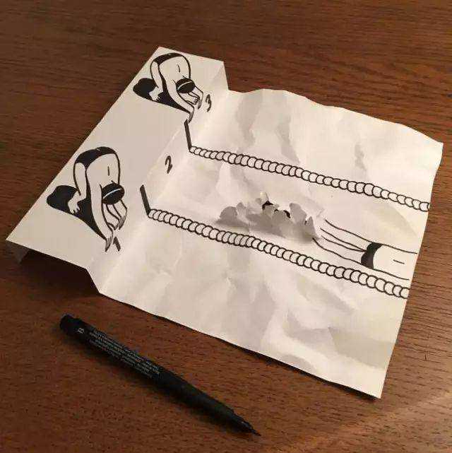 他不仅大量的在A4纸上作画还突破了“二维空间”的限制