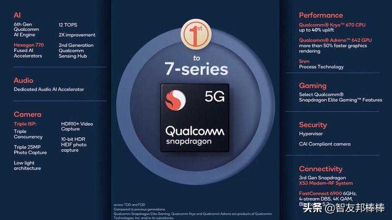 准确说骁龙768G的继任者,而他将瞄准低预算的5G智能手机。在性能和多媒体能力方面进行了一些大的升级,大核数量增加了一倍--GPU性能大幅提升,并采用了性能更强的全新融合AI引擎与全新Hexagon770DSP。