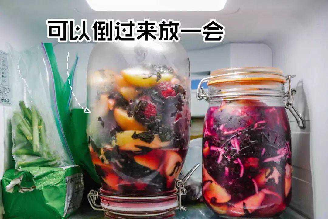 在冰箱里,食材会渗出水分,记得把罐子倒过来放一会,可以让每一层的食材都雨露均沾。