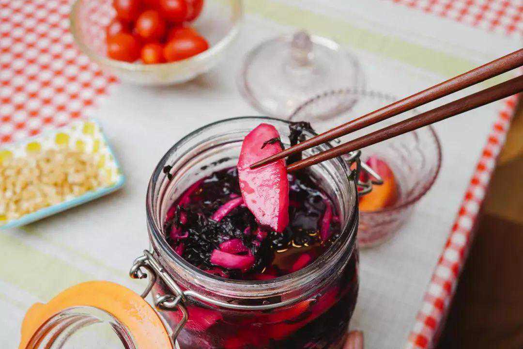 如果想增加泡菜的风味,可以在夏季时加入时令的杨梅,冬天可以使用杨梅罐头。新鲜的杨梅洗净,然后放入盐水中浸泡15分钟,就可以了。