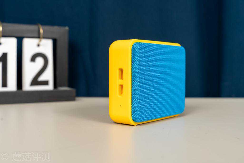 ▼蓝牙音箱的外观非常漂亮,并且有多种配色,均是撞色设计,我这里选择了蓝色和黄色的撞色外观,看起来非常有活力。音箱的前面直接就是一整块保护网,其内部就是扬声器单元