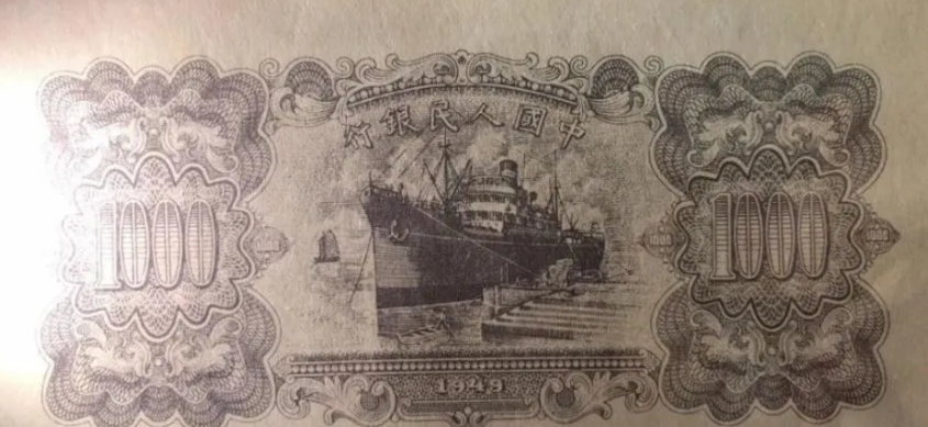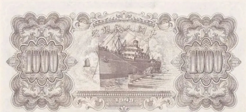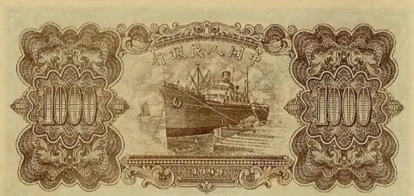 第一版人民币壹仟圆运煤与耕田背面