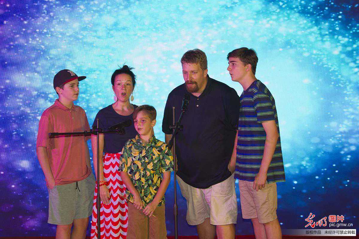 外籍居民PEDRICK一家参加中外文化交流文艺汇演,表演全家合唱。(北京市顺义区空港街道香蜜湾社区供稿)ThePedrickfamilywereperformingachorusinaChinese-ForeignerCultureExchangeEvent.(ContributedbyXiangmiwanCommunity,KonggangSubdistrictofBeijing’sShunyiDistrict)