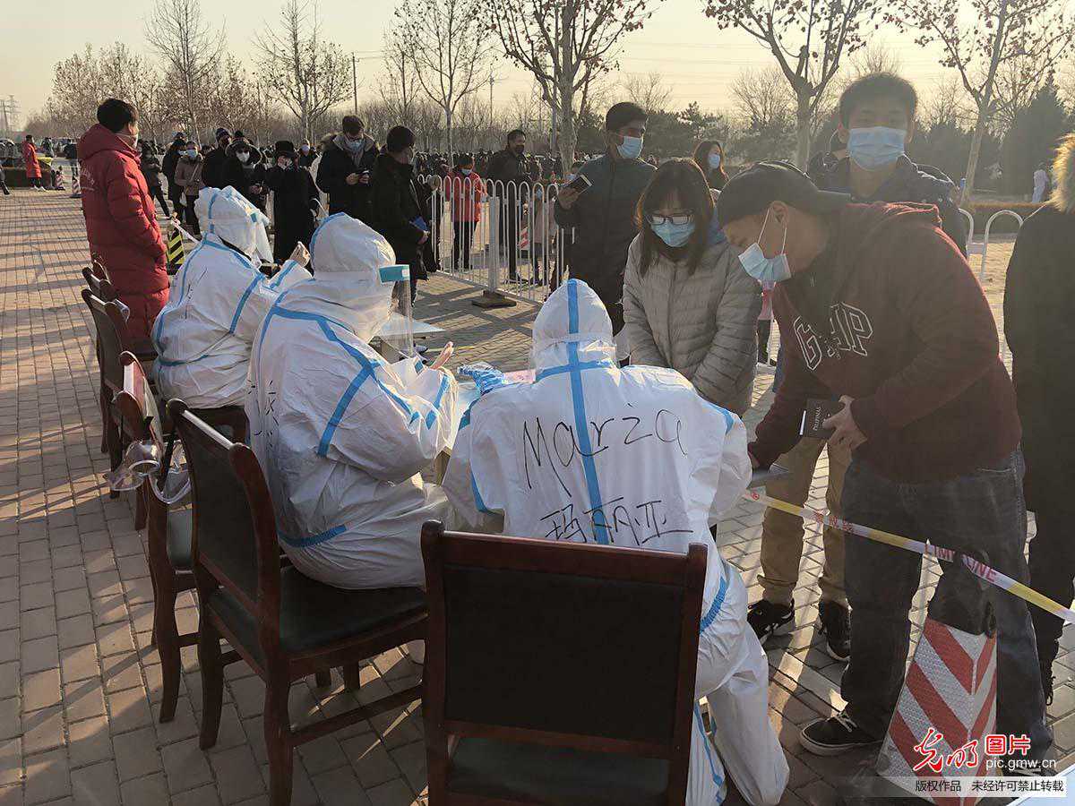 外籍志愿者玛利亚支援新国展全员核酸排查。(北京市顺义区空港街道香蜜湾社区供稿)Maria,aforeignvolunteer,participatedinnucleicacidtestattheChinaInternationalExhibitionCenter.(contributedbyXiangmiwanCommunity,KonggangSubdistrictofBeijing’sShunyiDistrict)