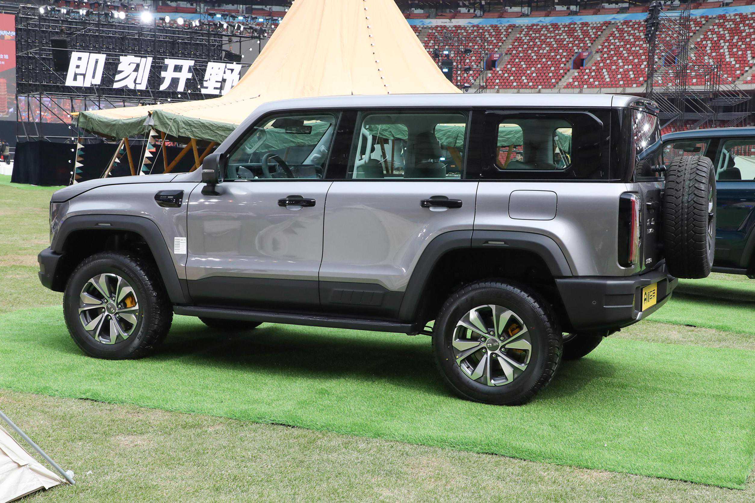 新北京BJ40刀锋英雄版攀登者整车长宽高分别为4790*1940*1915毫米,轴距为2760毫米,属于紧凑型SUV级别,车身采用了方盒子造型,黑色方形轮拱、黑色侧裙、车侧脚踏板、厚重宽大的防刮蹭保险杠、侧开式尾门以及外挂式备胎,都是硬派SUV惯用的设计元素,不过刀锋英雄版攀登者并没有车顶行李架,还有无框车门对于硬派SUV车迷们来说褒贬不一。